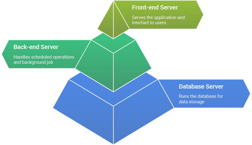 Whether an app is being hosted “on-prem” or via the “cloud”, the next way to optimize is to divide workloads into specific resources. Rather than having one virtual machine that handles everything, you set up multiple machines each with a specific purpose. For example, you might structure it so that: